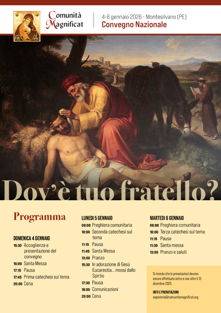 În decorul clasic al Grand Hotel Adriatico din Montesilvano (PE), unde Comunitatea Magnificat a trăit atât de multe convenții generale, Convenția Națională a Fraternităților italiene (cu excepția celor din Sicilia) a avut loc între 4 și 6 ianuarie 2026.